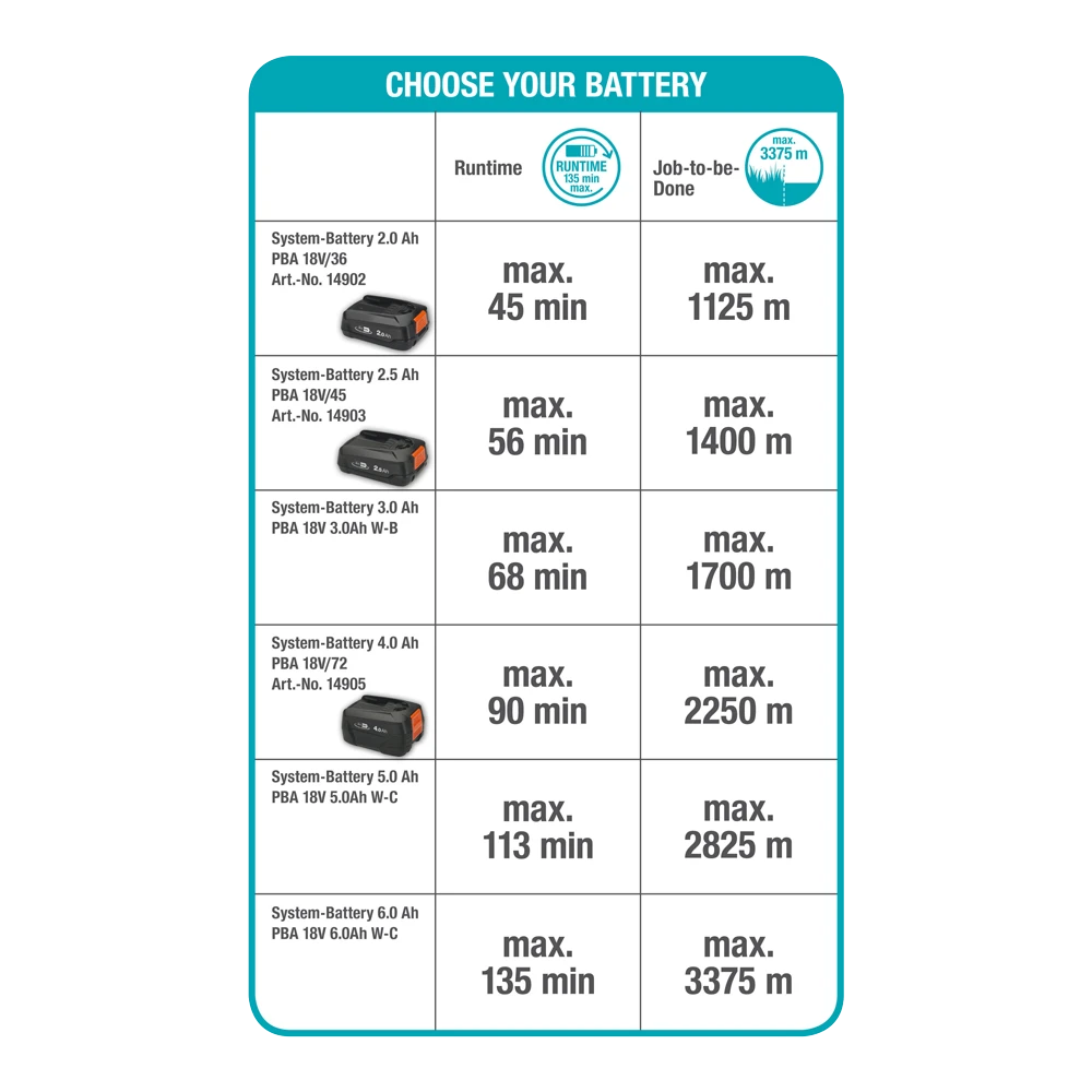 Gemakkelijk en snoerloos gazon trimmen: De Accutrimmer ComfortCut 23 / 18V P4A maakt het mogelijk om uw gazon in vorm te krijgen. Zelfs op plekken die meestal moeilijk te bereiken zijn! De ComfortCut 23 / 18V P4A is zeer licht van gewicht waardoor het gebruik van de trimmer comfortabel is. U kunt de snoerloze trimmer langdurig gebruiken zonder u moe te voelen.De Trimmer ComfortCut 23 / 18V P4A solo is compatibel met alle accu’s van de 18V FOR ALL ALLIANCE. Afhankelijk van de gebruikte accu kan het product een maximale gebruiksduur van de accu bereiken van 135 minuten en tot 3375 m gazonrand per gebruikstijd maaien. Na een snelle en eenvoudige montage is de ComfortCut 23 / 18V P4A direct inzetbaar. Pas voordat u begint de snoerloze trimmer eenvoudig aan uw behoeften aan – zowel de handgreep is verstelbaar als de telescopische steel. Zo blijft u tijdens het trimmen rechtop en ontspannen werken. Tijdens het werken is de laadtoestand altijd zichtbaar op de led-batterijstatusindicator in het handvat.Wilt u onder obstakels door maaien? Verander dan eenvoudig de hoek van de trimmerkop. Of wilt u langs verticale randen zagen? Druk op de knop en draai de draaibare kop in de randpositie. Maakt u zich geen zorgen over planten die in een bloembed aan de rand van het gazon groeien. De uittrekbare en afneembare plantbeschermer houdt uw bloemen en struiken goed beschermd. De GARDENA Accutrimmer ComfortCut 23 / 18V P4A solo wordt geleverd zonder accu en oplader. Hij is compatibel met alle 18V-accu’s van de POWER FOR ALL ALLIANCE, een van de grootste accu-allianties van meerdere merken van toonaangevende fabrikanten. Deze accu’s kunnen worden gebruikt voor tal van apparaten in huis en tuin. U bespaart dus geld en blijft flexibel!Passion powered by GARDENA – Tuingereedschap op accu dat u de vrijheid geeft om te creëren.