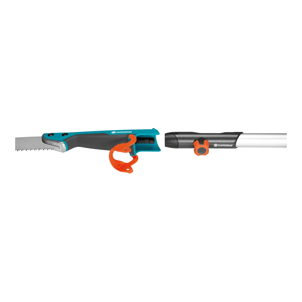 De GARDENA combisystem snoeizaag 300 PP met een zaagbladlengte van 325 mm kan flexibel worden gebruikt afhankelijk van waar u wilt zagen: als u takken onder handbereik wilt zagen, gebruikt u de snoeizaag eenvoudig als “normale” handzaag. De zaag ligt goed in de hand dankzij het ergonomische handvat met softgrip componenten. Als u takken tot een hoogte van 5 meter wilt afzagen, vergroot u het bereik van de snoeizaag door een combisystem telescoop steel te gebruiken. Praktisch: plaats de combisystem steel eenvoudig op de zaag. De veiligheidsvergrendeling garandeert een muurvaste verbinding. Gezette zaagtanden met impulsgeharde tandpunten, aan beide zijden geslepen zorgen voor veilig zagen. Dankzij een speciale coating, is de CS snoeizaag 300 PP optimaal beschermd tegen roest. Een stop op het uiteinde van het handvat beschermt uw hand tegen wegglijden, ook bij trekkende bewegingen. Met ophangoogje en mesbeschermer om de zaag veilig te kunnen opbergen.