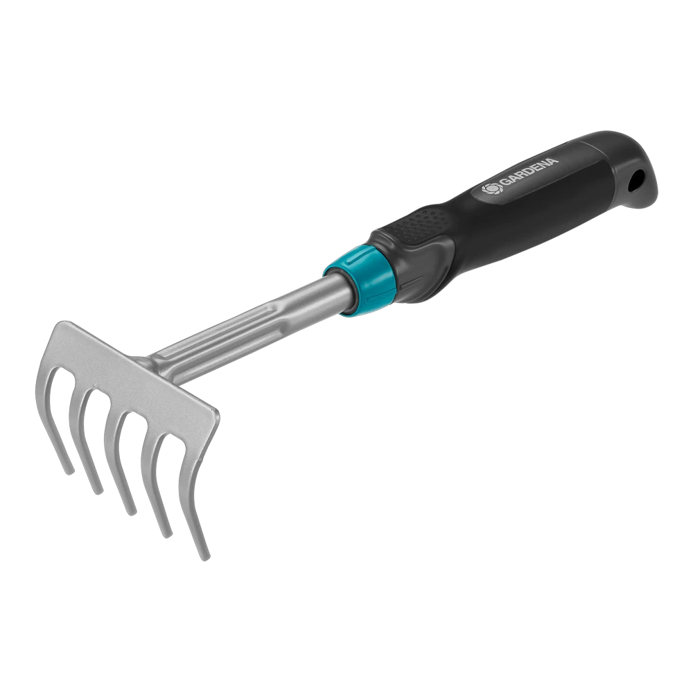 De GARDENA handharkje is ideaal om te harken en de grond los te maken. De ergonomische handgreep met zacht component past perfect in de hand en de hoek aan het einde voorkomt wegglijden. Het harkje heeft een werkbreedte van 8,5 cm. Het blad is gemaakt van hoogwaardig staal en voorzien van een duroblast coating voor een lange levensduur.