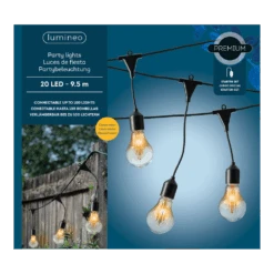 Lumineo Feestverlichting Lichtsnoer – Classic Vorm – 950cm – 20 LEDS Groot – Klassiek Warm