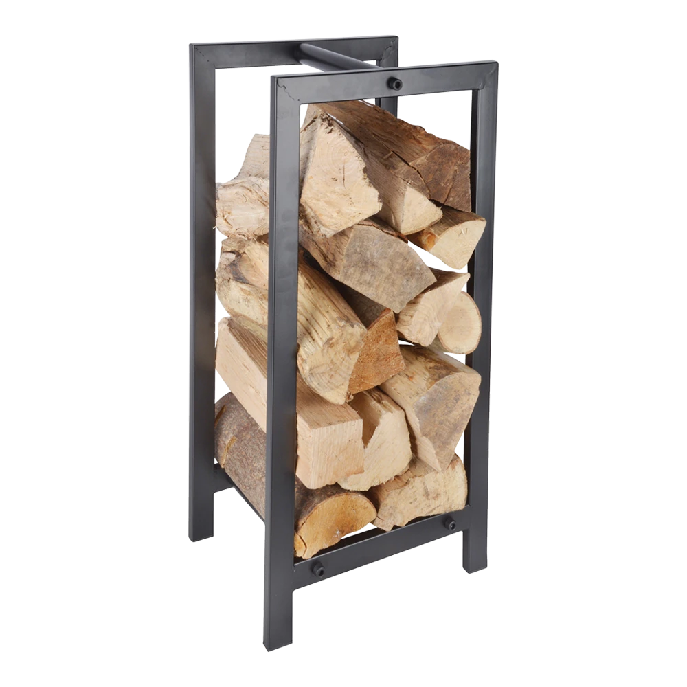 Met deze trendy houtopslag haal je iets bijzonders in huis. Naast opslag voor het hout, kan deze ook eenvoudig als drager worden gebruikt. De drager kan buiten gevuld worden met hout, en dankzij de handgreep in het midden, makkelijk meegenomen worden naar binnen om bij de open haard geplaatst te worden.