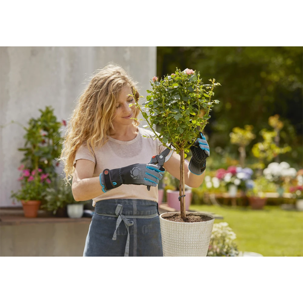 Als u de handschoen voor rozen in maat M van GARDENA draagt, kunt u voorzichtig werken en tegelijkertijd goed beschermd zijn. De tuinhandschoen voor middelgrote handen is voorzien van een lange boord met verstelbare polssluiting. Deze combinatie beschermt uw pols en uw onderarmen betrouwbaar. Bovendien worden bijzonder gevoelige gebieden zoals vingers en de handpalm beschermd met aramidemateriaal. Dit materiaal is perforatiebestendig, zodat doorns geen probleem meer zijn. Net zo praktisch: U kunt de tuinhandschoen met de Mobile Touch-functie op uw duim en wijsvinger gebruiken om het touchscreen van een smartphone of tablet eenvoudig te bedienen. Het vermoeiende uittrekken van handschoenen behoort tot het verleden met de voor smartphonegebruik geschikte handschoen. Een ander materiaalkenmerk dat de handschoen voor rozen biedt, is dat deze niet alleen beschermt, maar ook een Oeko-Tex® Standard 100-certificering heeft en dus vrij is van schadelijke stoffen.