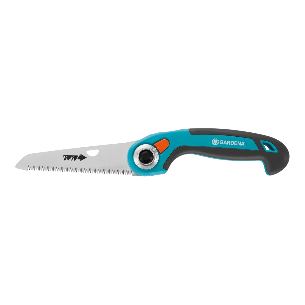 De inklapbare snoeizaag 135 P behoort tot de nieuwe generatie GARDENA zagen. Deze zaag heeft een totale lengte van 135 mm, en is daardoor een eenvoudig te gebruiken allrounder voor het afzagen van dikkere takken. Ideaal voor alle kleinere zaagklussen in de tuin en voor outdoor activiteiten. Lichtgewicht en effectief. Het hard verchroomde zaagblad heeft impulsgeharde 3-zijdig geslepen precisie zaagtanden, wat zorgt voor snelle resultaten met weinig krachtinspanning en een bijzonder nauwkeurige zaagsnede. Inkerven is aanzienlijk vereenvoudigt. Roest krijgt geen kans. U kunt deze zaag meenemen in de tuin, door deze veilig ingeklapt en vergrendeld in uw broekzak, of aan uw riem hangen. Als u de zaag nodig hebt, klapt u deze gewoon weer open. Met de vergrendelknop kunt u het zaagblad in drie bladstanden vastzetten. Na gebruik, klapt u de zaag weer dicht. Het zaagblad verdwijnt veilig in het fraai vormgegeven handvat. Tijdens het zagen, beschermt een stop op het uiteinde van het handvat uw hand tegen wegglijden. Dit is bijzonder nuttig gebleken bij trekkende bewegingen en ondersteunt u bij een soepel verloop. Dankzij de ergonomische vormgeving, het iets hoekige handvat met softgrip componenten, ligt deze zaag comfortabel en veilig in uw hand. De zaag kan veilig worden opgeruimd op een handige plaats door deze aan het ophangoogje op te hangen.