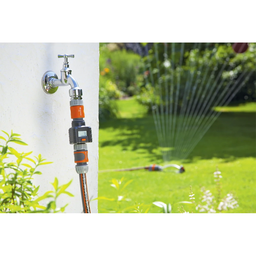 De innovatieve GARDENA watermeter maakt de doelgerichte besproeiing mogelijk, meten is weten. In een oogopslag ziet u 1. het waterverbruik per dag, 2. het waterverbruik per seizoen, 3. het waterverbruik per besproeiing 4. de huidige waterstroom in liter per minuut. De verbruikte water hoeveelheid kan worden afgelezen op elk gewenst moment op de grote display en daardoor gecontroleerd. Door een enkele knop voor alle functies is de watermeter eenvoudig te gebruiken. De nieuwe watermeter van GARDENA maakt een einde aan nattevingerwerk. De watermeter zorgt ervoor dat u een betere controle heeft op het waterverbruik en hoe u dit in de hand kunt houden. Dit is goed voor de tuin, het milieu en uw portemonnee. De watermeter werkt op batterijen en kan direct worden aangesloten op de kraan, op een tuinspuit, op een sproeier of op een pomp. De robuuste en slagvaste watermeter klikt u op de schroefdraad kraanstuk of slangstuk en levert direct belangrijke gegevens door middel van actieve meting. Een geïntegreerde batterij-indicatie weergave stelt nauwkeurige bediening. Deze innovatieve meter maakt mensen bewust van het waterverbruik.