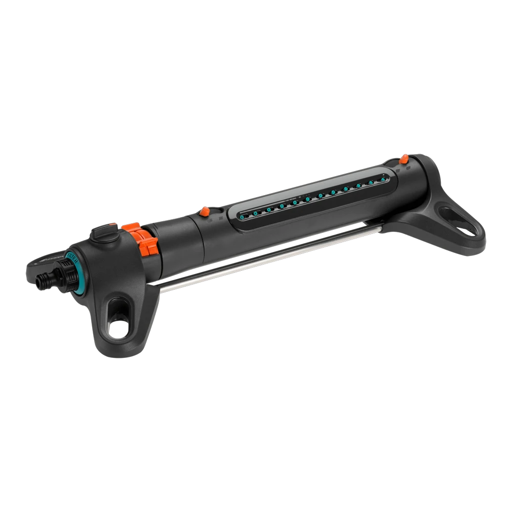 De AquaZoom S van GARDENA biedt u alles wat u nodig hebt om uw gazon betrouwbaar water te geven. Geschikt voor oppervlakken van 9 tot 150 m², gelijkmatige en nauwkeurige bewatering zonder plasvorming. Geniet van elk moment van de zomer. U heeft verschillende instelmogelijkheden voor de besproeiing, middels de schuifregelaars op de sproeier. Hiermee kunt u het bereik tussen 3 en 15 meter instellen, de sproeibreedte tussen 3 en 10 meter en heeft u ook de mogelijkheid om slechts aan één kant water te geven. Een zeer nauwkeurige instelling is mogelijk met de regulering van de waterafgifte. Door de twee grote sledes staat de sproeier altijd stabiel op de grond, uniek en effectief ontworpen met ​ een moderne uitstraling. Niet alleen over het uiterlijk is goed nagedacht, het gebruik van hoogwaardige materialen zorgt ervoor dat de AquaZoom S bestand is tegen vorst en UV-straling. Deze handige zwenksproeier is bijzonder eenvoudig te reinigen. Eventuele kalkafzetting op de sproeimondjes van zacht kunststof kunt u er moeiteloos met uw vinger vanaf vegen. Bovendien is de wateraansluiting voorzien van een filter van roestvrij staal, dat voorkomt dat vuildeeltjes in de AquaZoom S terecht komen. Het filter is eenvoudig uitneembaar en kan gewoon onder stromend water worden afgespoeld.